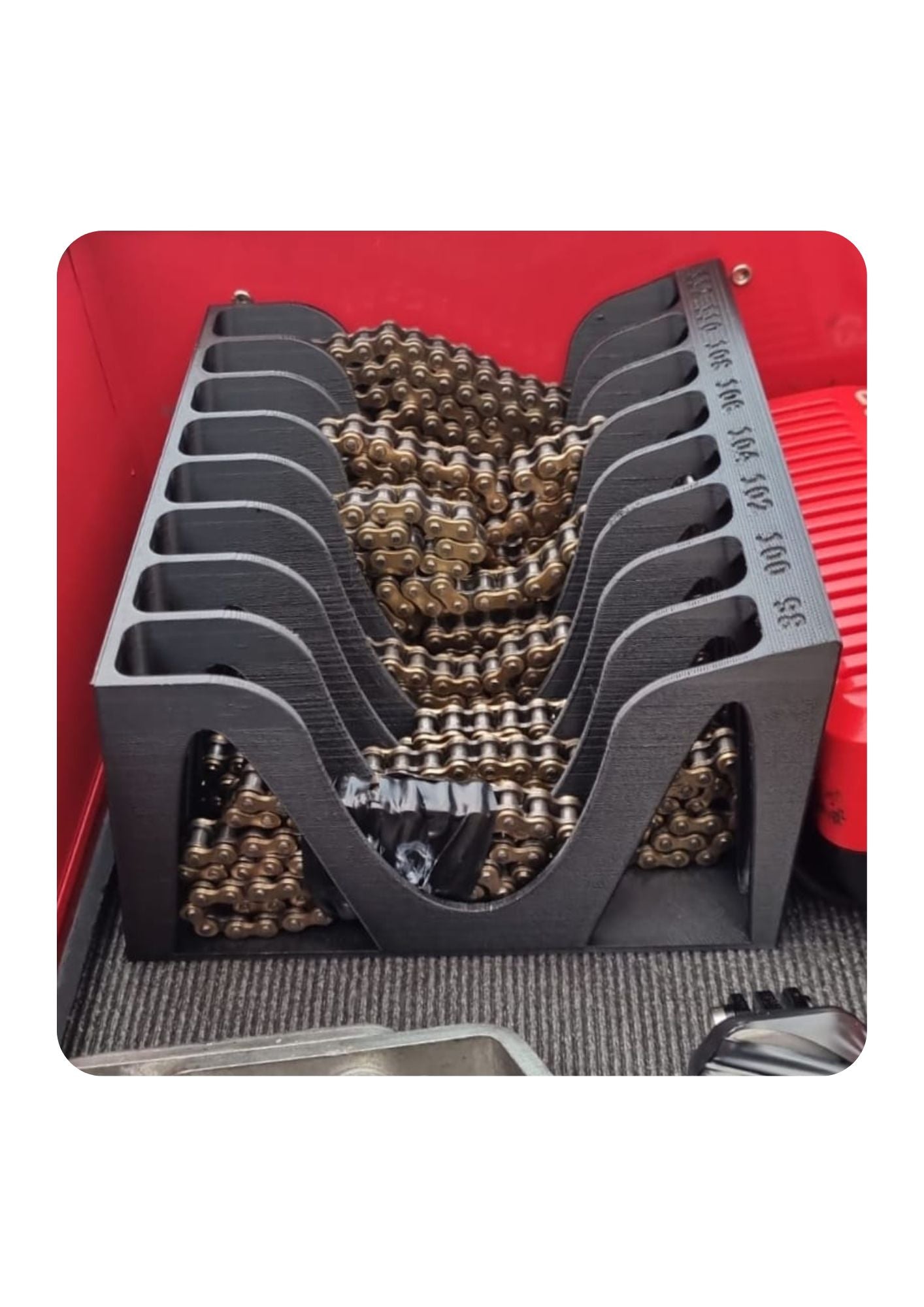 Ottimizza lo spazio e il flusso di lavoro dei meccanici karting in pista, progettato per tenere ogni catena sempre ordinata e a portata di mano.